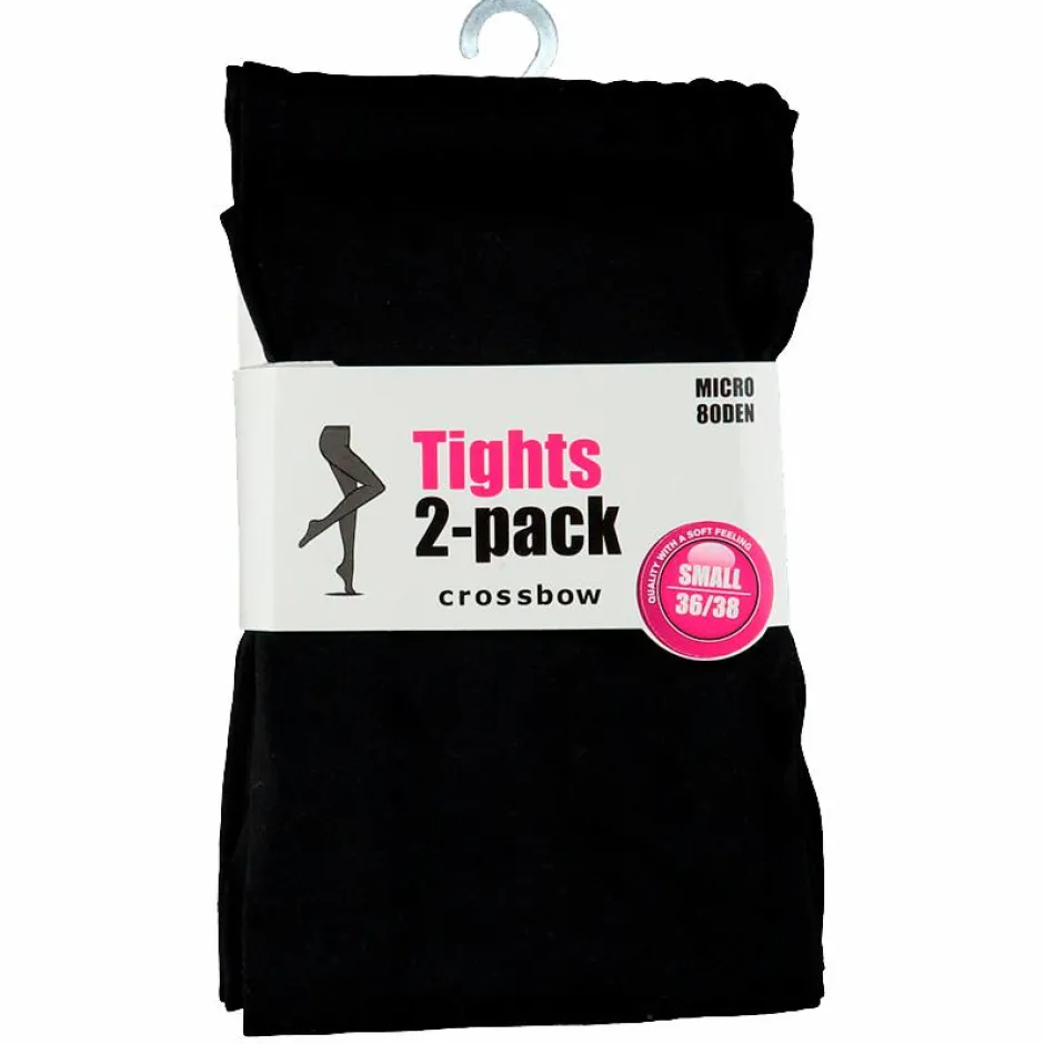Crossbow dame strømpebukser 2-pak. Med en tykkelse på 80 denier får du en rigtig fin kombination af både komfort, stil og elegance. Strømpebukserne smyger sig fint om kroppen og giver dig god bevægelighed uanset om du bruger strømpebukserne til hverdag eller fest.