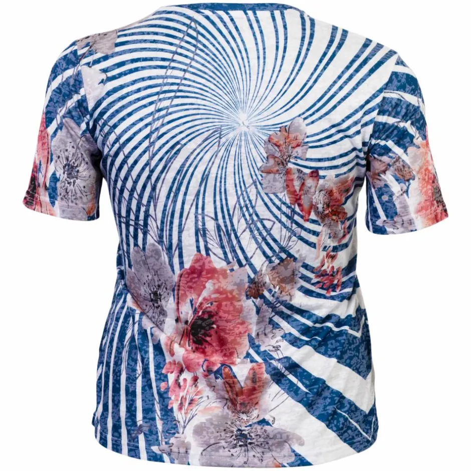 Gabriella K. plus size t-shirt med all over print. T-shirten har en klassisk rund hals og korte ærmer. T-shirten er dekoreret med rhinsten.