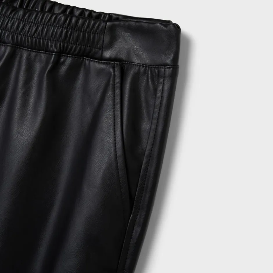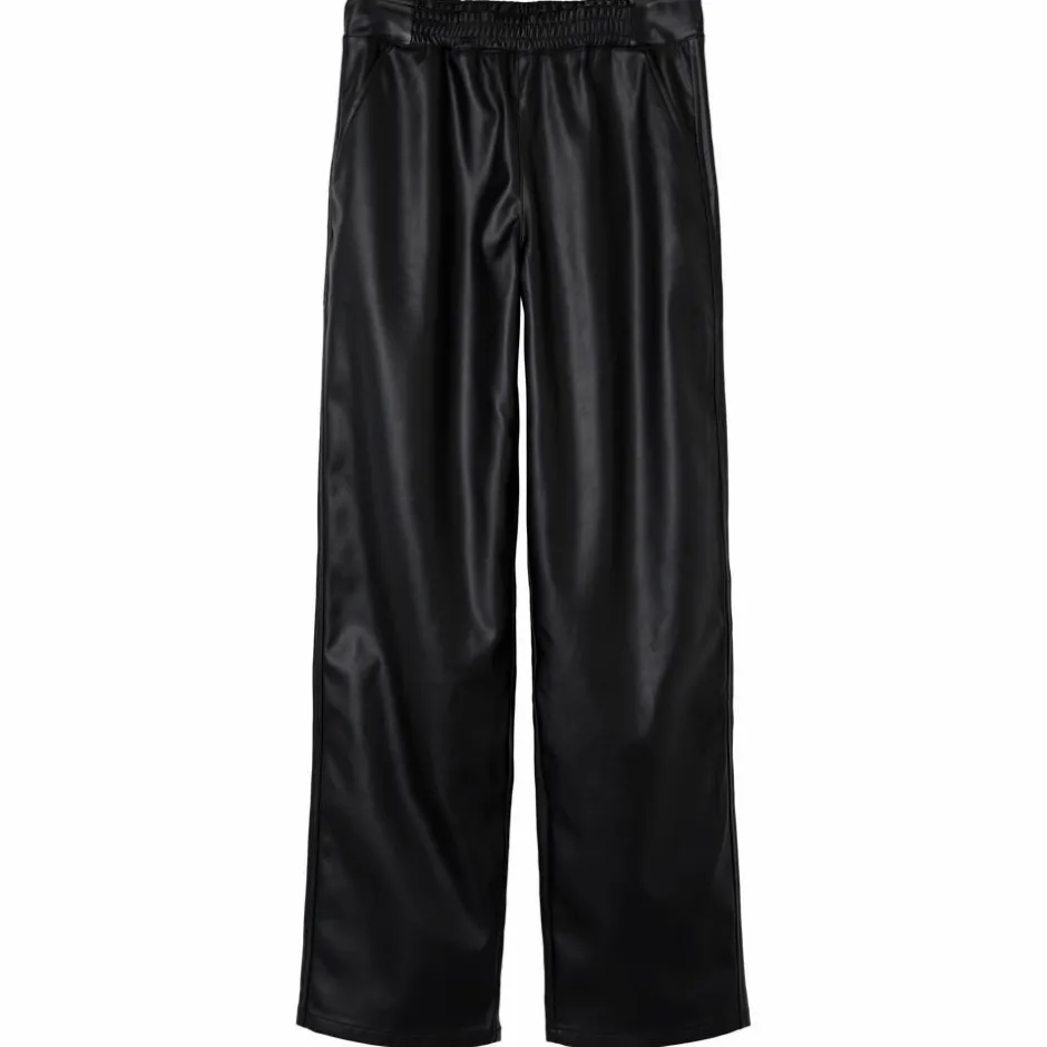 PU bukser i læderlook med straight leg. Bukserne har 2 lommer på fronten samt elastik i taljen, for en behagelig og flatterende pasform.