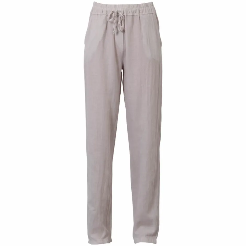 Dame plus size hør bukser med to lommer samt elastik og bindebånd i linningen.