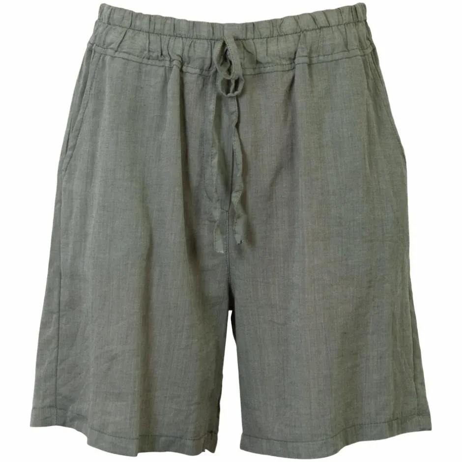 Dame plus size shorts i hør med to lommer samt elastik og bindebånd i linningen.
