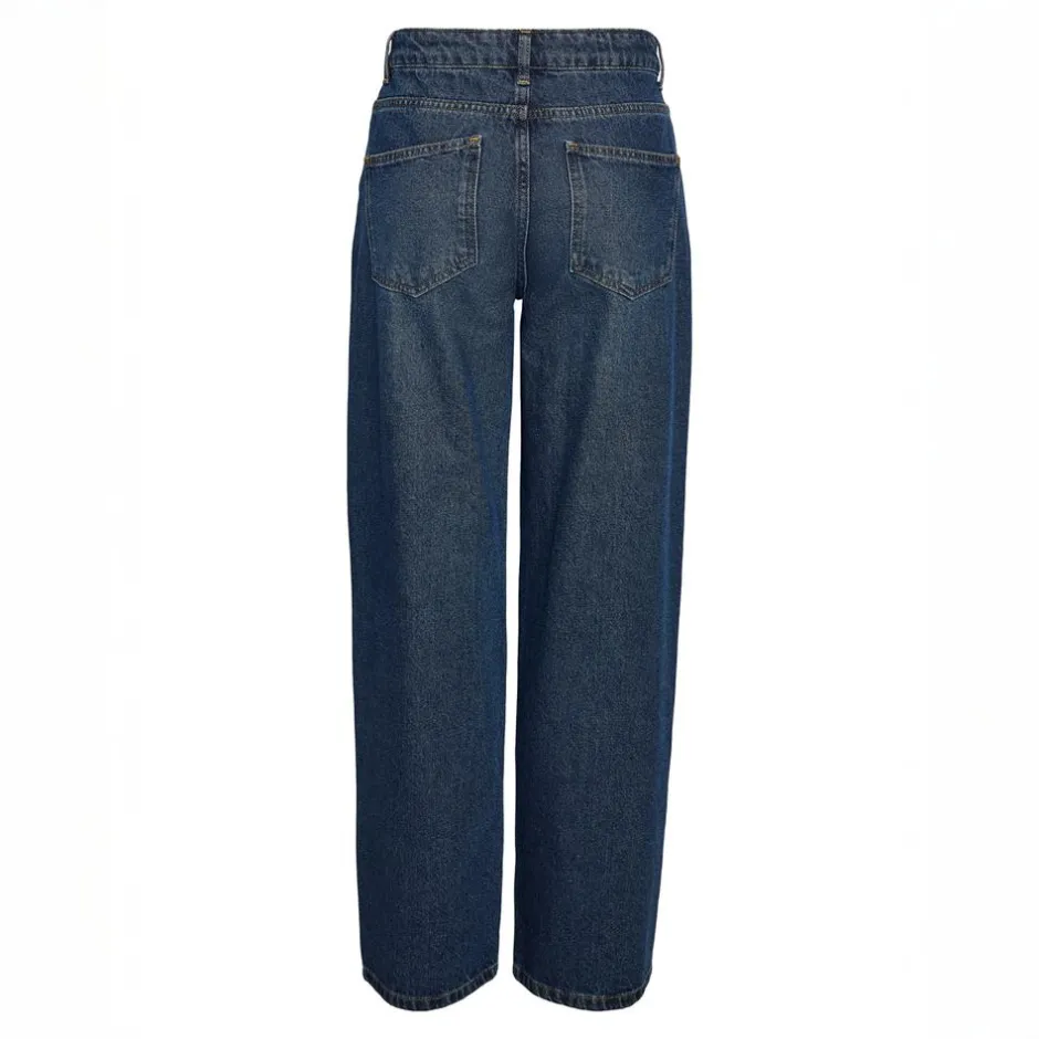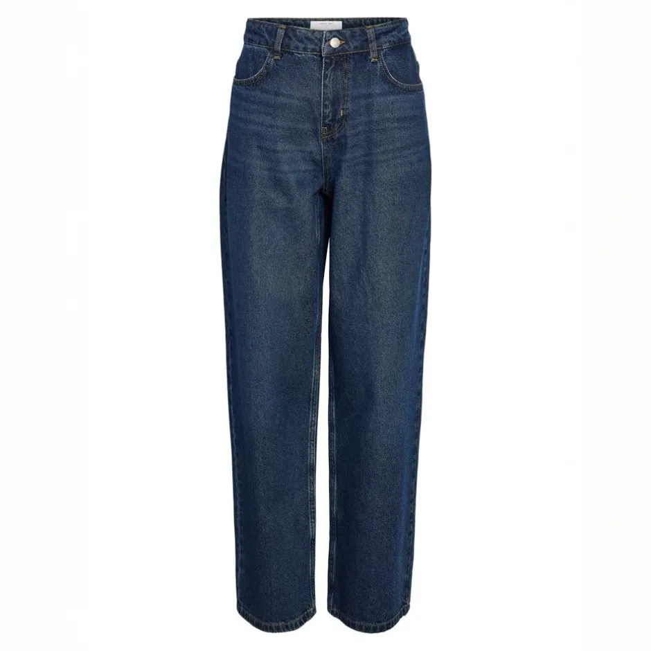 Disse damejeans i mørkeblå denim er skabt til en aktiv hverdag. Snittet er enkelt med god bevægelighed, så du får en ren silhuet, der passer ind på arbejde såvel som i fritiden. Style med strik, skjorter eller t-shirts og toppe for et afslappet, velklædt udtryk.