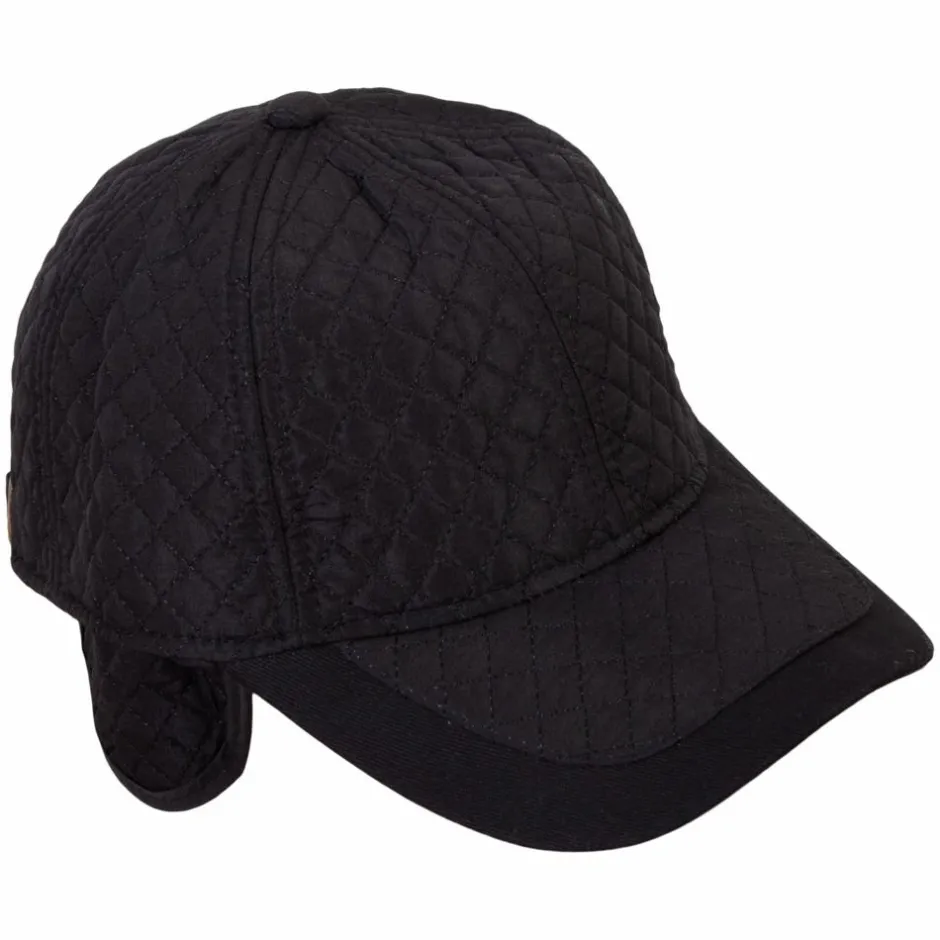 Crossbow quiltet kasket. Cappen har ternede syninger på fronten og den er justerbar i nakken. Derudover er det muligt at folde forede øreflapper ned, som holdes fast af et elastik i nakken.
