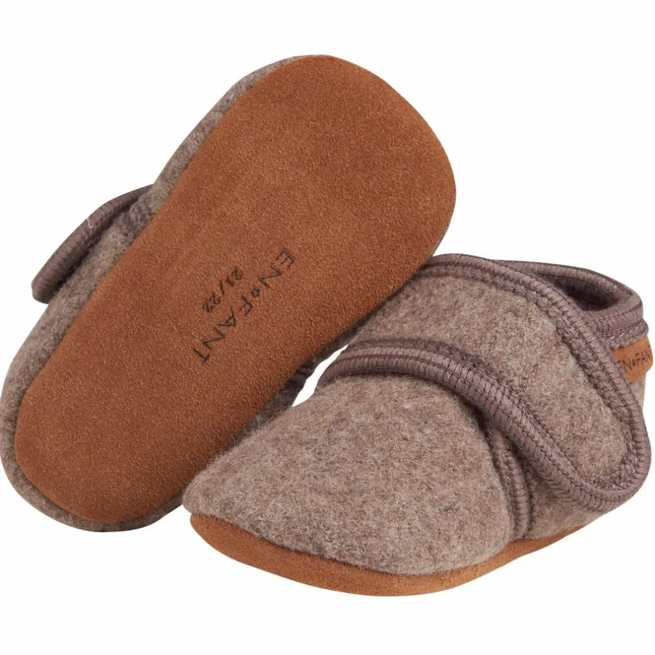 En Fant uld hjemmesko til baby og børn. Super søde filt hjemmesko med bred velcrolukning, som gør det let at tage skoen af og på. De dejlige hjemmesko har en solid ruskindsbund, der sikrer et godt fodfæste og samtidig holder kulden væk fra barnets fødder. Hjemmeskoene er lavet af uld, som gør dem dejligt varme og praktiske.