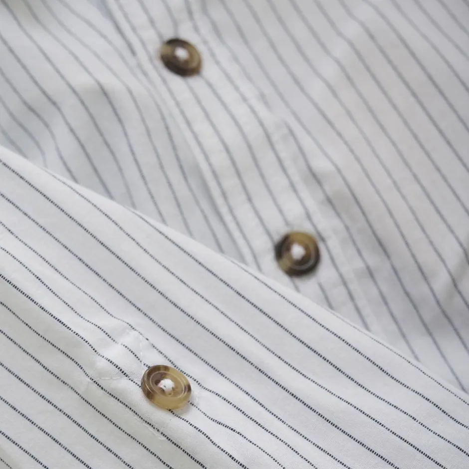 Minymo langærmet bomuldsskjorte i stribet design. Skjorten har klassisk pasform og design, og har gennemgående knaplukning på fronten.
