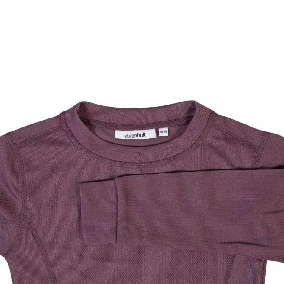 Steenholt Outerwear børne skiundertøj. Lækkert unisex skiundertøj til sport og fritid. Sættet består af en langærmet trøje med rund halsudskæring og lange bukser med elastik i linningen. Sættet er dejligt behageligt og giver en god varme i de kolde tider.