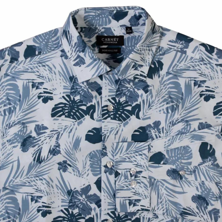 Carnét plus size herre langærmet skjorte med all-over print. Skjorten har gennemgående knaplukning, krave samt brystlomme.