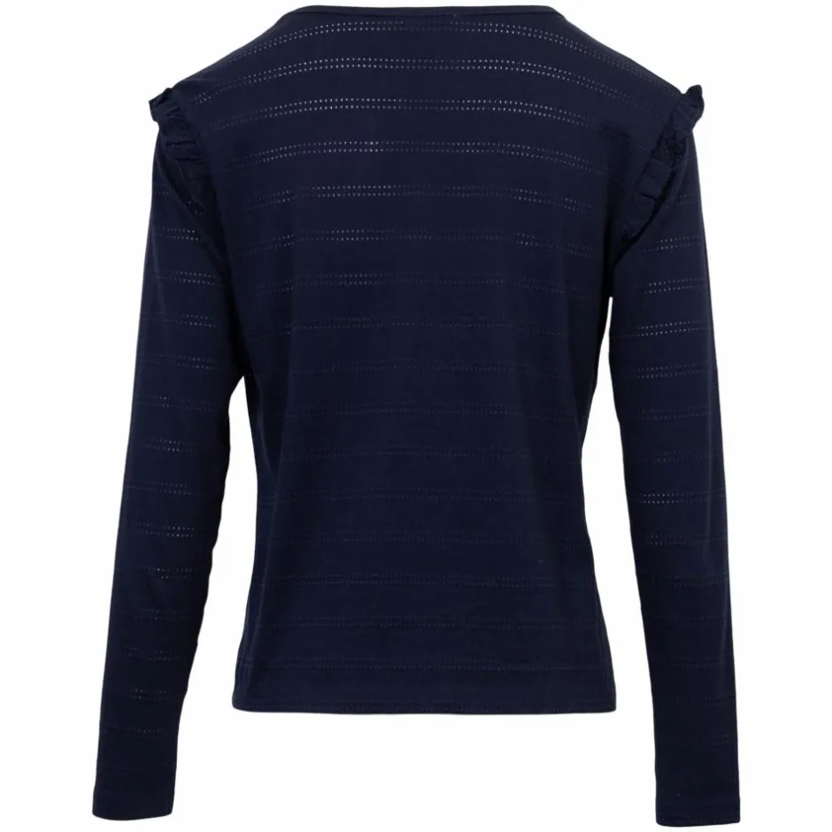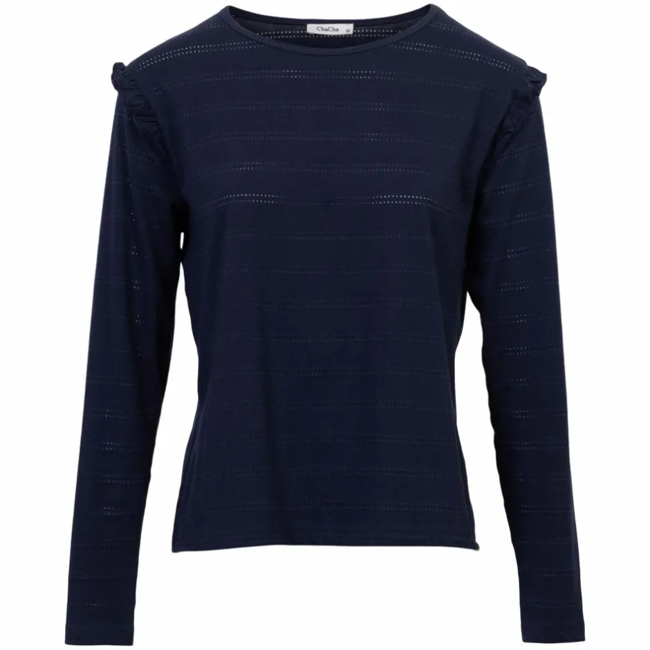Chacha bluse med hulmønster. Sød bluse i en let og blød bomuldskvalitet. Blusen har en rund halsudskæring og en fin flæse detalje ved skulderne.