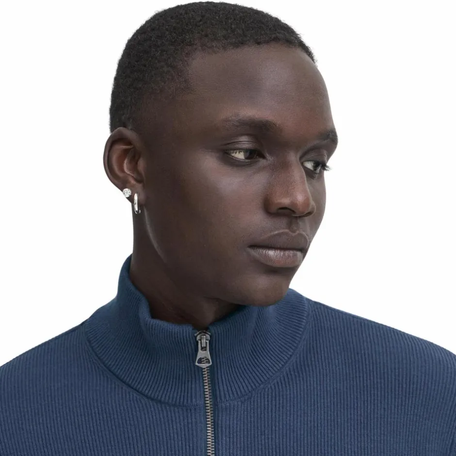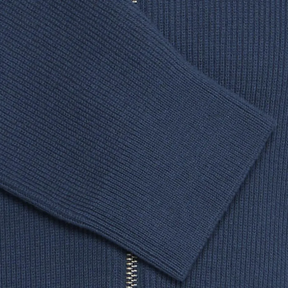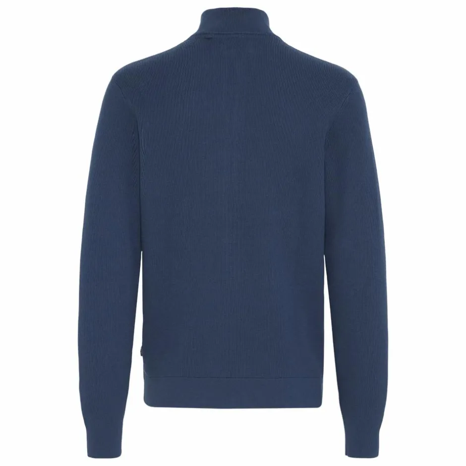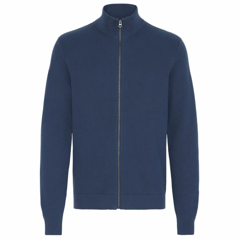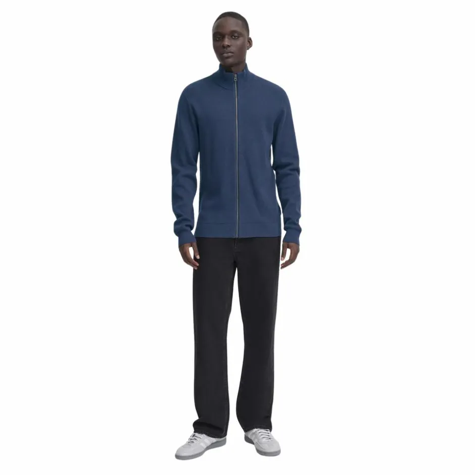 Blend strik cardigan til herre. Cardiganen er stikket i smal rib, har en høj hals og en gennemgående lynlås. Cardiganen er lavet i en strækbar bomulds kvalitet, der sikrer en god og behagelig pasform.