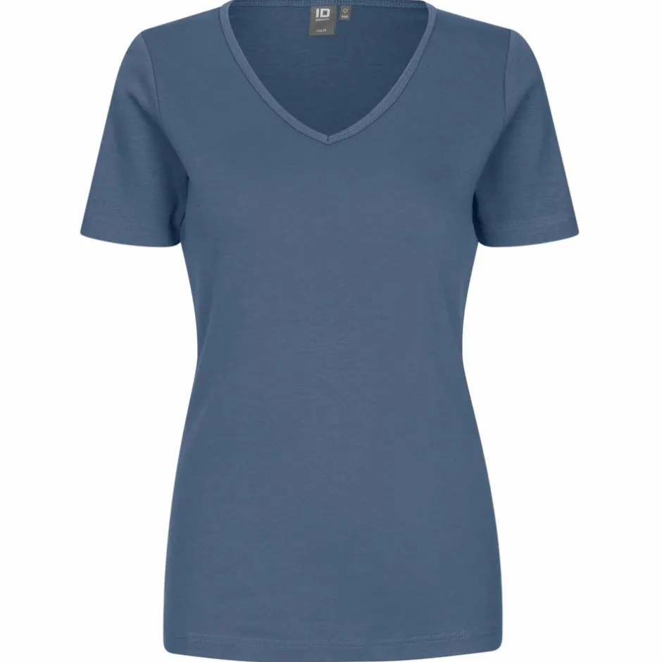 ID dame t-shirt. Kortærmet interlock T-shirt med V-hals i blød antipillingkvalitet. Let figursyet.