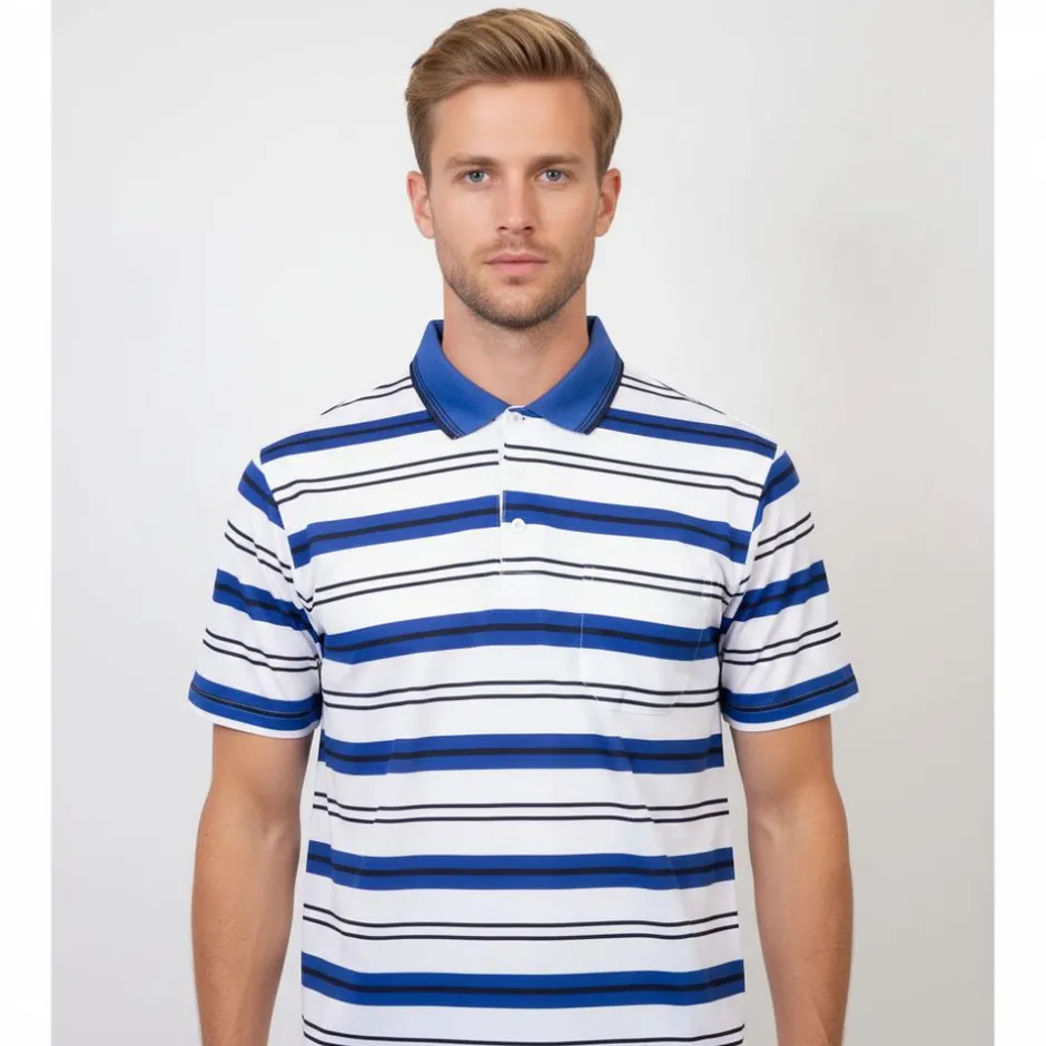 Klassisk og smart herre polo i en blød kvalitet. Poloshirten har en traditionel polokrave og en brystlomme. Den kortærmede polo har knappestolpe med tre knapper. Polo trøjen er designet med flotte farvedetaljer med kontrastfarvede striber