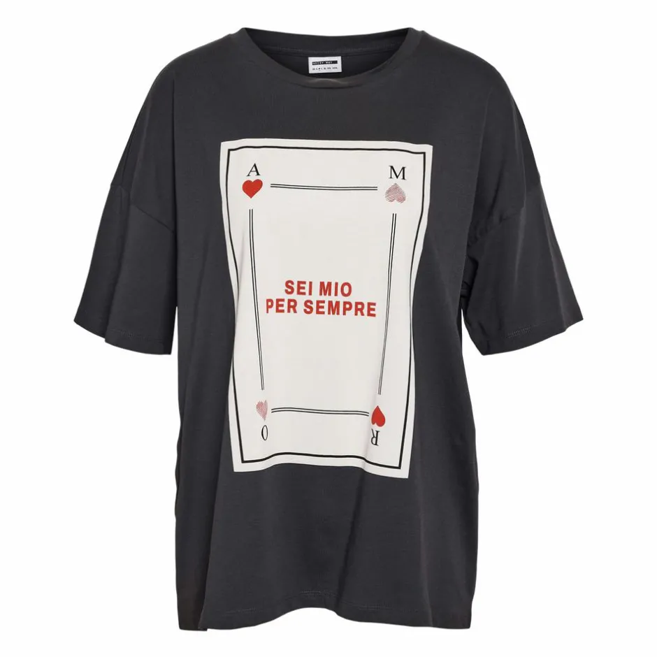 Noisy May oversized t-shirt med print på fronten. T-shirten har en klassisk rund hals og korte ærmer.