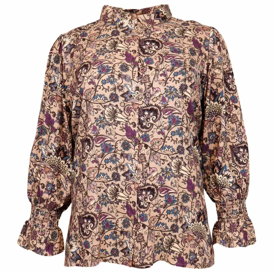 Ofelia Tove dame skjorte. Skjorten har en gennemgående knappelukning, samt har den all-over print. Skjorten har en brystlomme, samt har skjorten elastik i ærmerne.