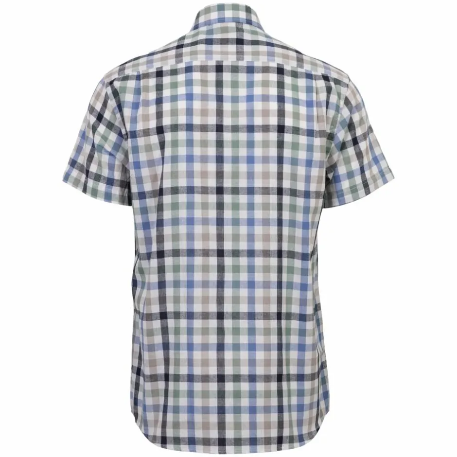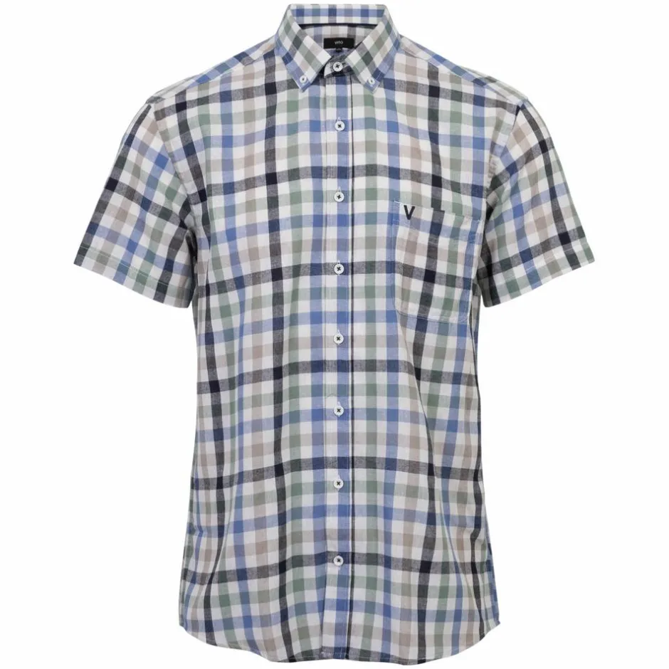Vito kortærmet herre skjorte. Skjorten har ternet mønster, og en enkelt lomme på venstre side med et indgraveret “V”.