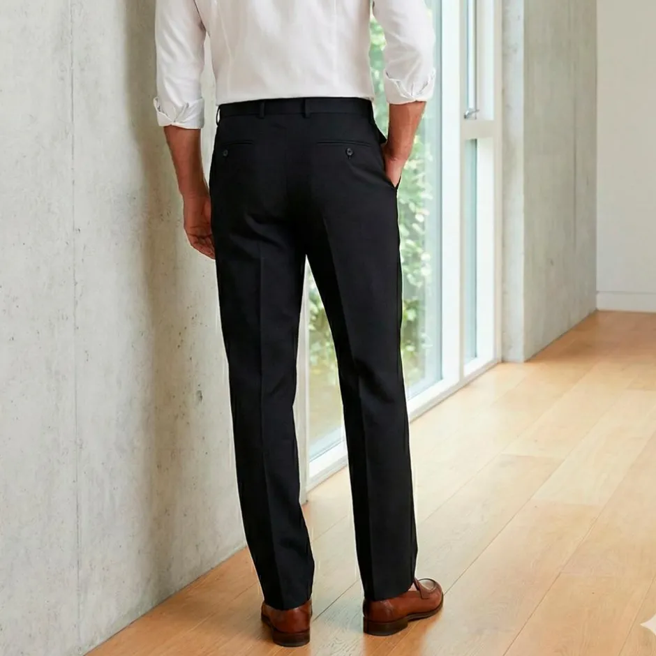 Carnét Eric herre habitbukser. Klassisk buks med fire lommer, bæltestropper i linningen og lynlåslukning foran. Habitbukserne har knæfor, normal forvidde og to baglommer med knap.