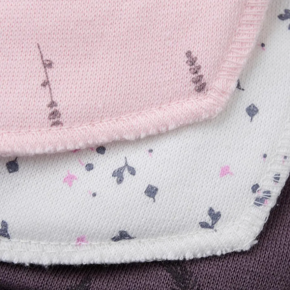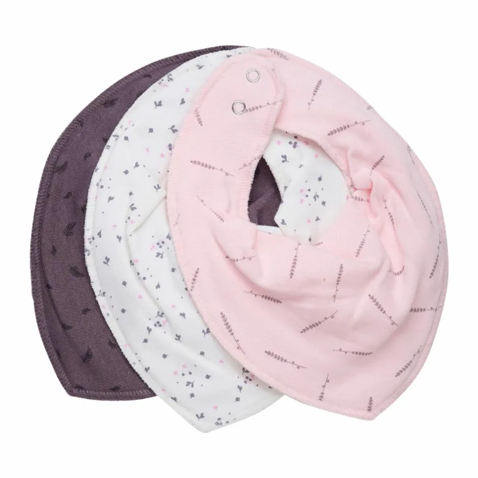 3-pack savlesmække i 3 forskellige farver. savlesmækkene har en spids form, og lukkes i nakken ved hjælp af tryknap med to indstillinger.