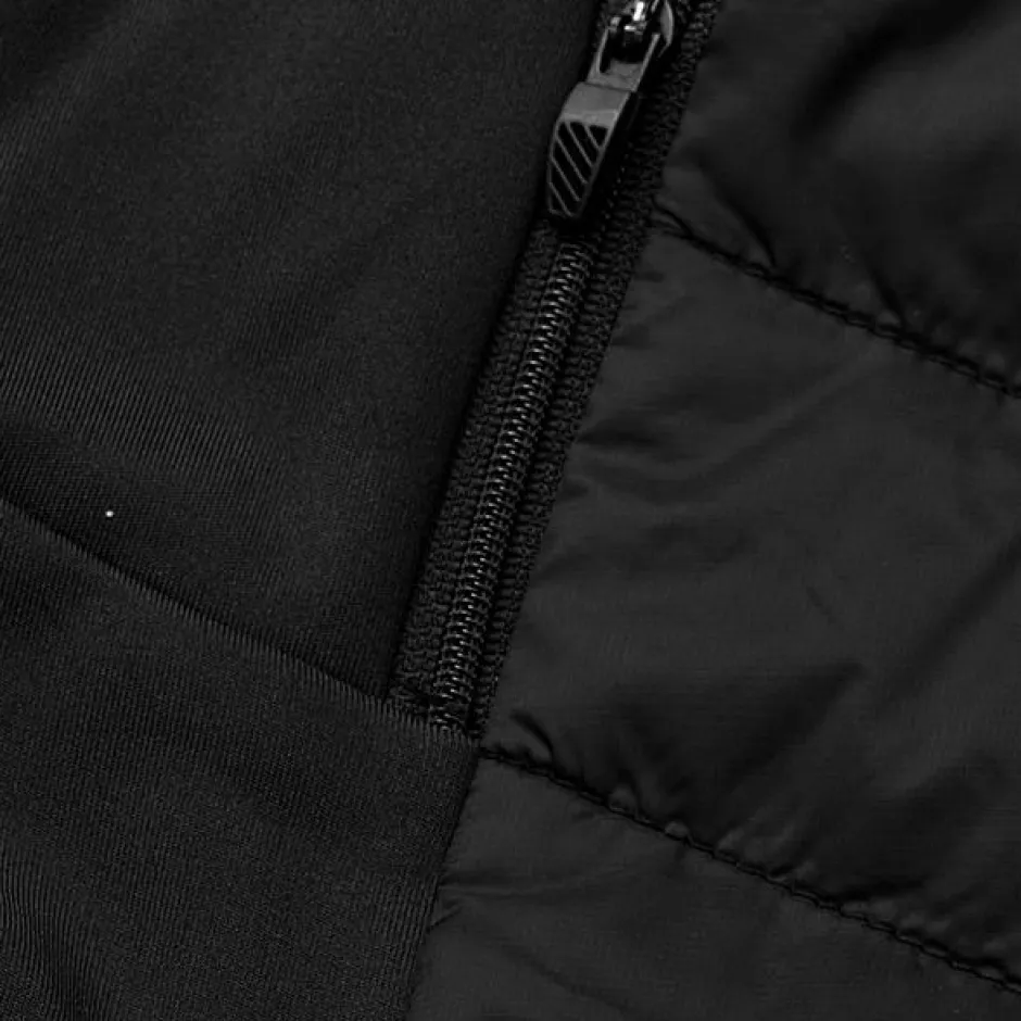 Sporty komfortabel hybrid jakke. Front, bag og ærmer i let quiltet vindtæt kvalitet. Vattering er THERMOLITE®T-DOWN lavet af recycled plastikflasker. Jakken er kombineret med en lækker blød 4-vejs stretch kvalitet, for optimale komfort og bevægelsesfrihed. YKK lynlås i front og sidelommer. Elastisk kantbånd i bund. Refleks print på front.