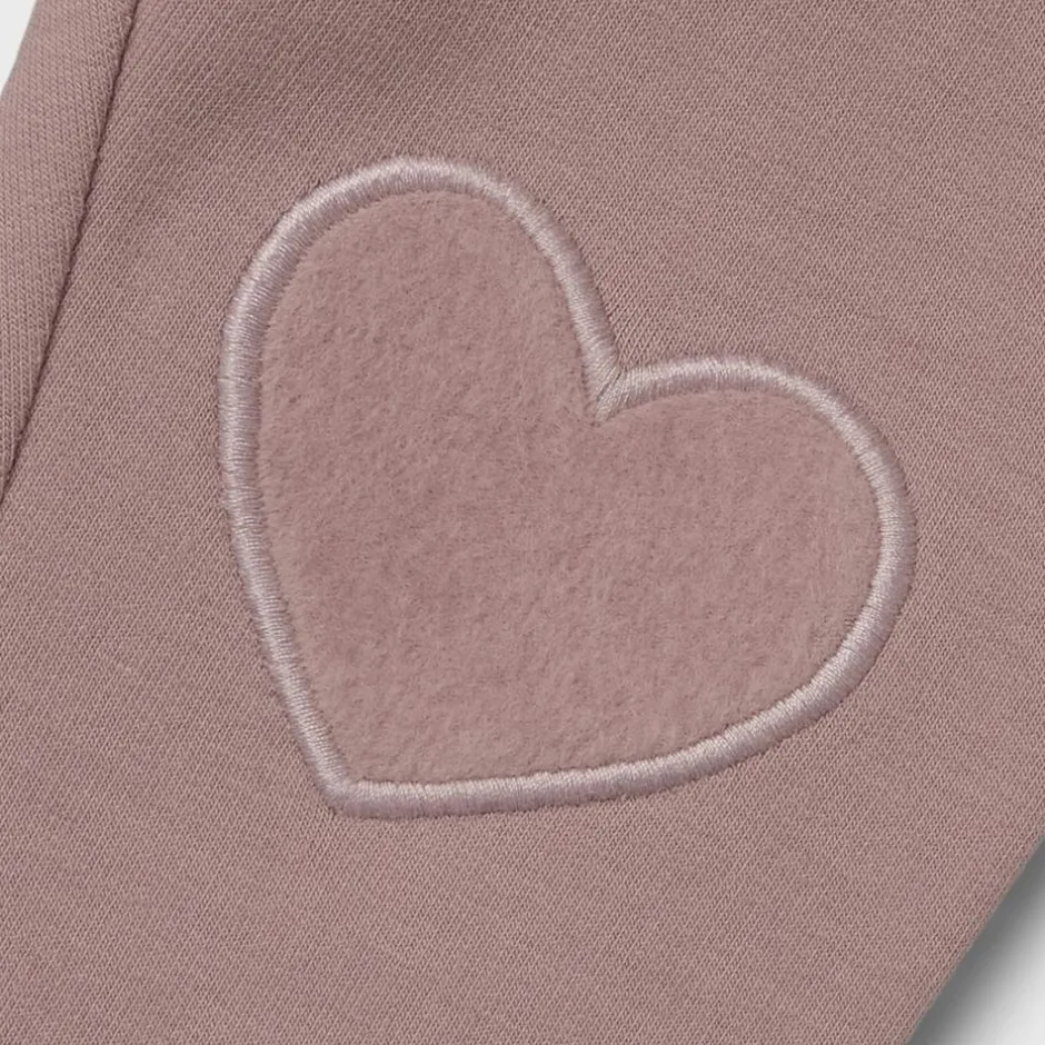 Guppy leggings til baby med søde påsatte filt hjerter ved knæene. Disse leggings kommer i en lækker blød kvalitet med en børstet inderside, som gør dem ekstra behagelige for barnet at have på.