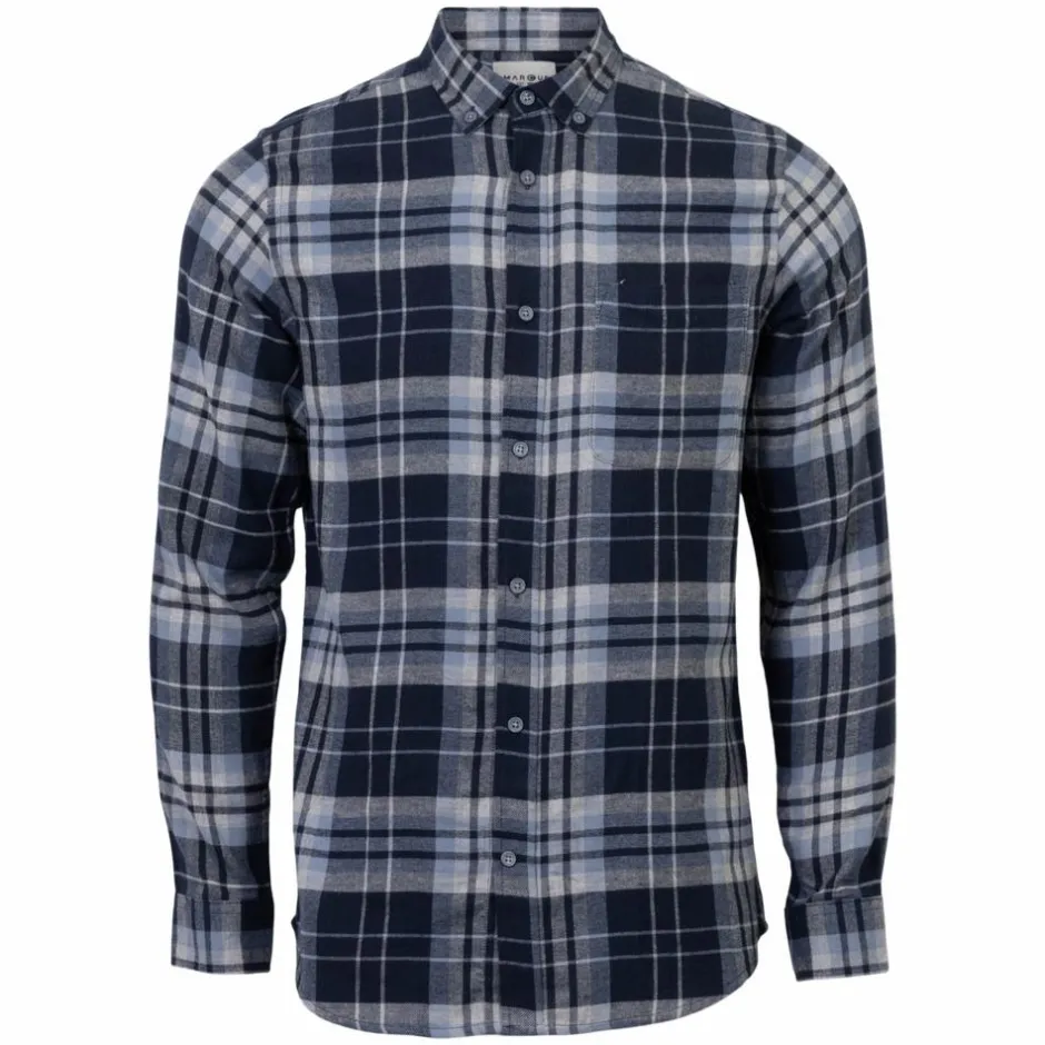 Marcus skovmandsskjorte i blødt flannel og flerfarvet tern. Skjorten har lange ærmer, brystlomme, en gennemgående knappelukning samt to knapper i kraven og ved ærmeåbning.