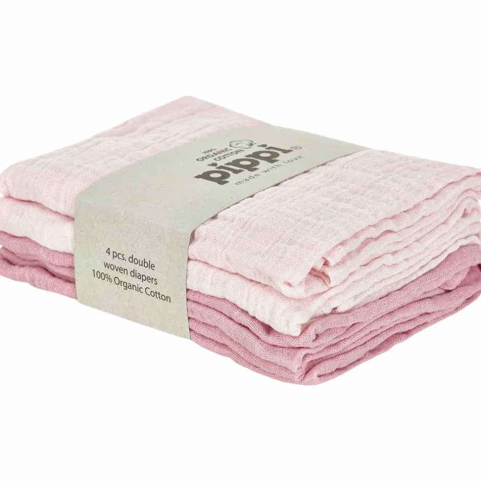 Pippi stofble 4-pak i økologisk bomuld. Stofbleer i et meget blødt og behageligt materiale. Bleerne måler: 65×65 cm. En stofble er uundværlig i enhver børnefamilie og i mange situationer. Brug den som underlag på puslebordet, som aftørringsklud eller som hagesmæk. Pakken med de flotte stofbleer er også en fin gaveidé som en barselsgave.