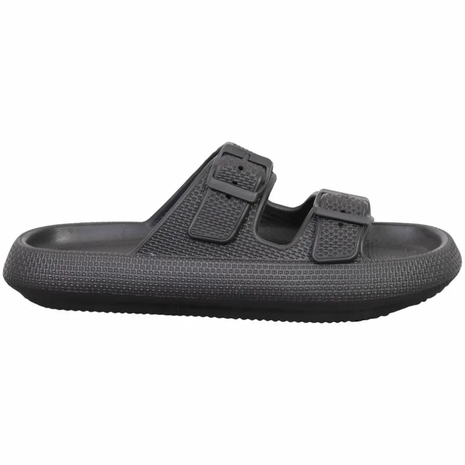 Anyway ensfarvet soft herre sandal. Sandalerne har to stropper over foden, som lukkes med en justerbar spændelukning. Sandalerne har en mønstret ydersål, som giver et solidt greb og stabilitet på forskellige underlag.