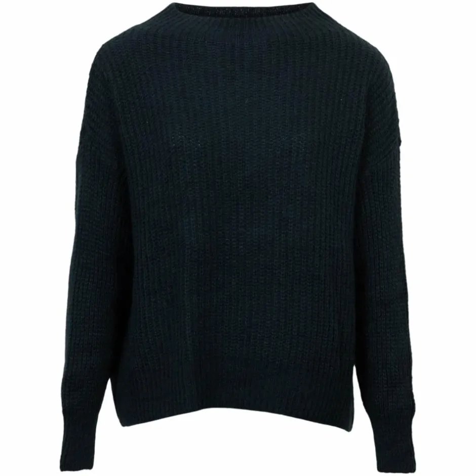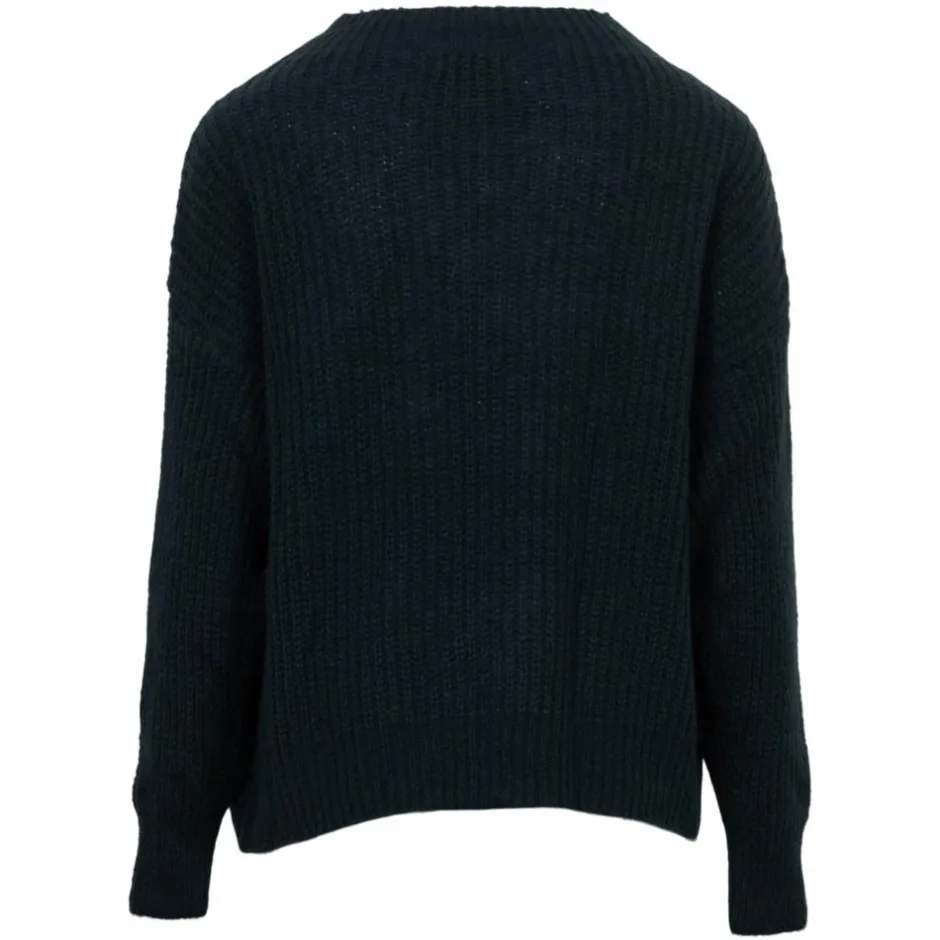 Denne strik i dyb pacifico har en rummelig pasform med rund hals og tydelig rib, der giver et roligt udtryk og behagelig varme. Blandingen af 30% polyamid, 10% uld, 10% mohair og 50% akryl sikrer blødhed, formstabilitet og en flot, fyldig struktur.
