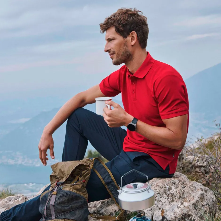 Eksklusiv GEYSER poloshirt i permanent svedtransporterende materiale med bomulds touch. Flot strikket krave og stand, der sikrer optimal pasform. Ærme med elastisk ribkant. Kort slids i sidesømme for god bevægelighed.