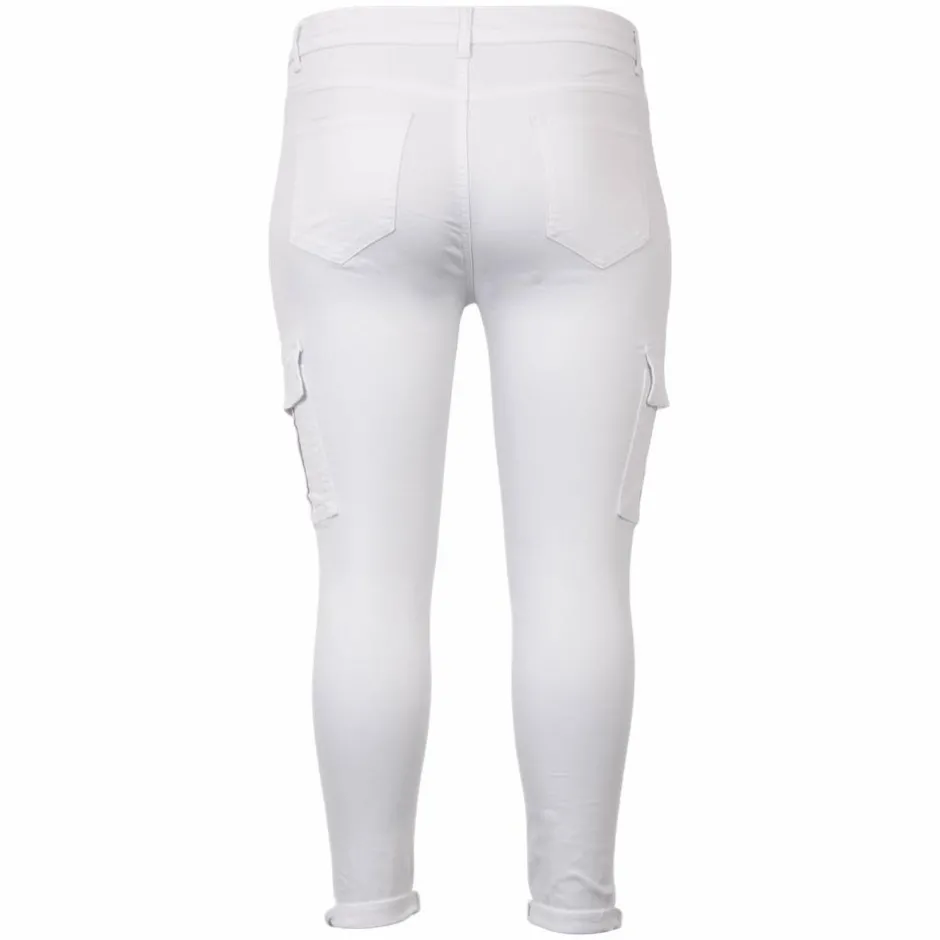 Hot BS Jeans Dame Cargobukser Plus Size – Hvid