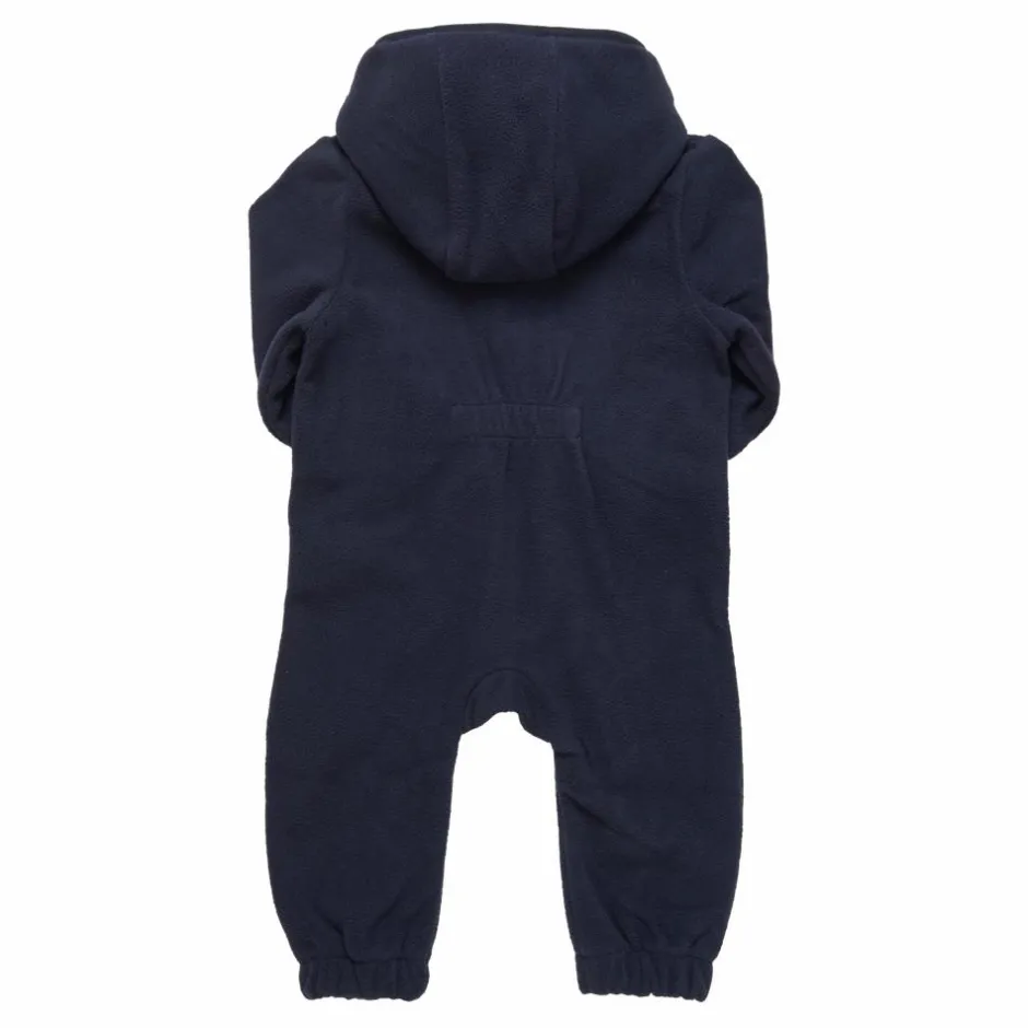 En Fant fleecedragt til baby og børn. Praktisk fleece heldragt til børn med en hætte, der er aftagelig med knapper. Dragten har en lynlås, som stopper ved højre ben. Den forlængede lynlås gør det let at klæde dit barn af og på. Dragten har elastik i bunden, som gør at dragten tilpasser sig om anklerne. Heldragten har en fin detalje med elastik i på ryggen. Fleecen er med lange ærmer og der er mulighed for ombuk ved håndleddet og derved lukke af hvor kulde og blæst.