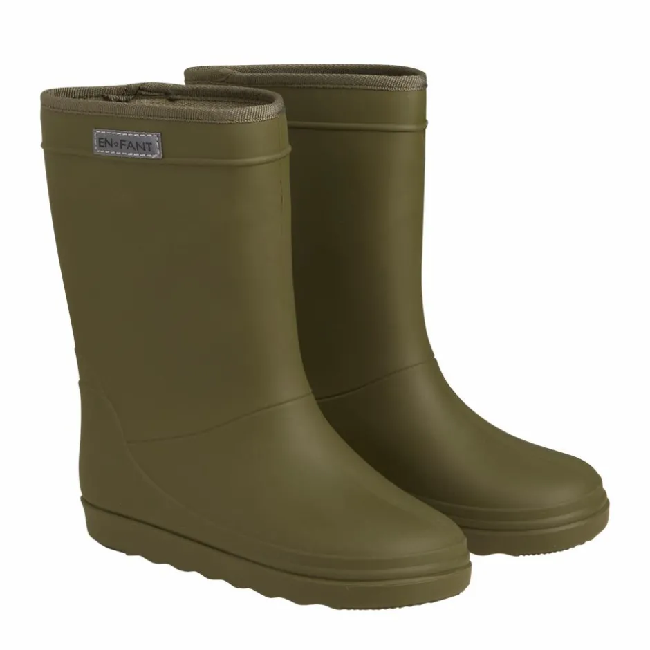 En Fant børne gummistøvler. Lækre gummistøvler med et mat finish og nylonkant på toppen af gummistøvlerne. Gummistøvlerne er lavet af letvægtsmaterialet Megol og støvlerne er behagelige og fleksible for barnet. Gummistøvlerne er lavet uden nogen form for sømme eller svejsninger og er helt fri for phthalater, PVC og PFTEE. Herudover er de varme afvisende og langtidsholdbare uden risiko for at udtørre. Formen og farven forbliver.
