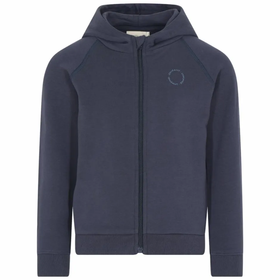 En Fant børne cardigan. Dejlig lækker cardigan med hætte og gennemgående lynlåslukning. I bunden samt ærmer er der ribkant. Foran på venstre bryst har cardiganen et rundt logo med teksten “En Fant”. Cardiganen er et-lags og ville være super smart åben med en bluse indenunder.