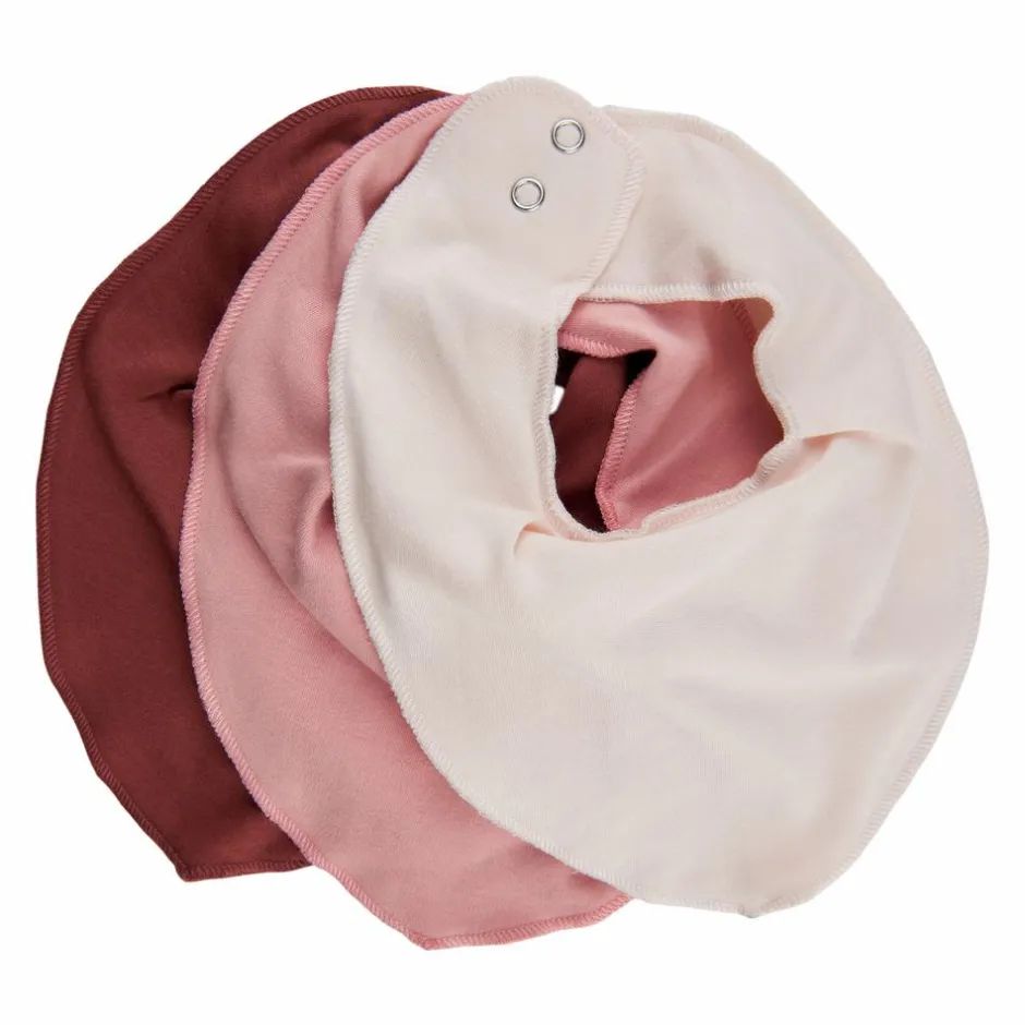 3-pack savlesmække i 3 forskellige farver. savlesmækkene har en spids form, og lukkes i nakken ved hjælp af tryknap med to indstillinger.