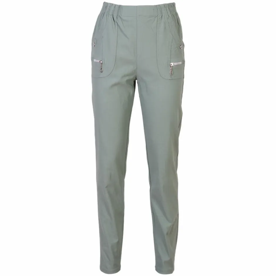 Dagny Dame bukser med flotte detaljer ved lommerne. Bukserne har bred elastik i linningen og er i en blød kvalitet.