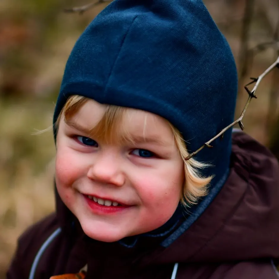 Mikk-line Børne Elefanthue i merinouldmix – Blue Nights