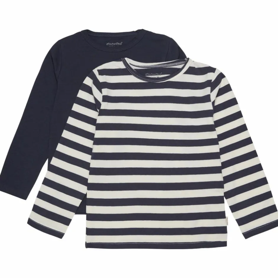 Minymo langærmet drenge t-shirt 2-pak. Lækre bluser med lange ærmer og rund halsudskæring.
