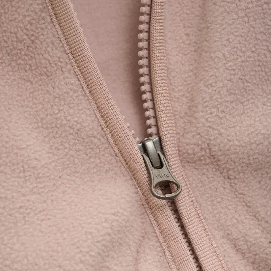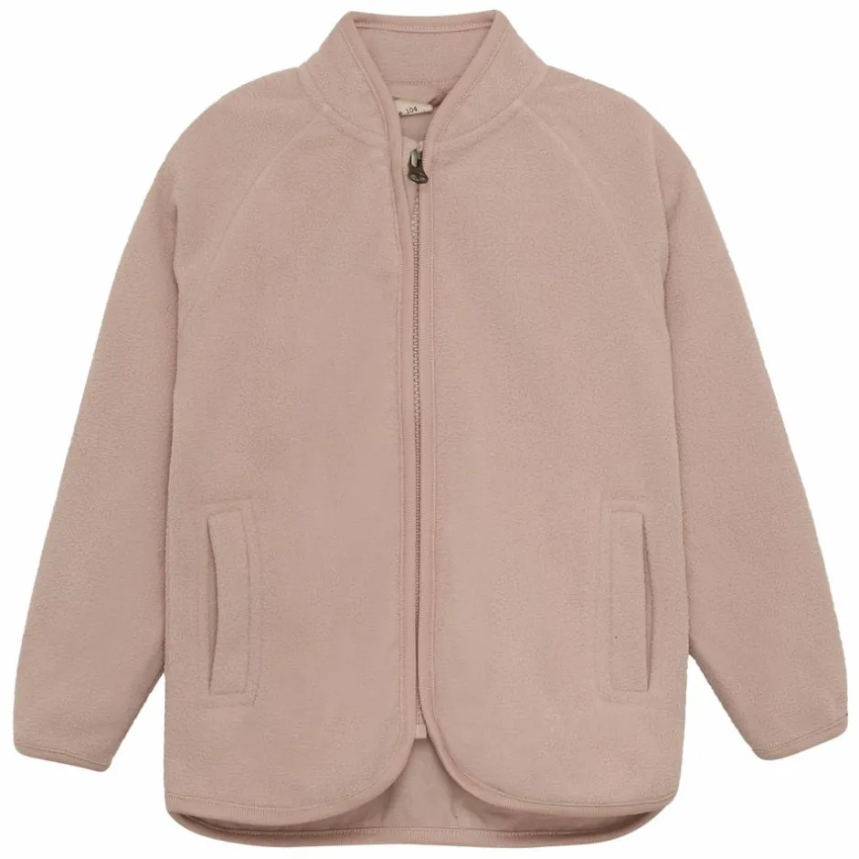 En Fant børne fleece jakke. Fleece jakken har en halvhøj krave, gennemgående lynlås, hagebeskytter og 2 åbne sidelommer. Jakken er lavet i materiale, som gør jakken behagelig at have på.