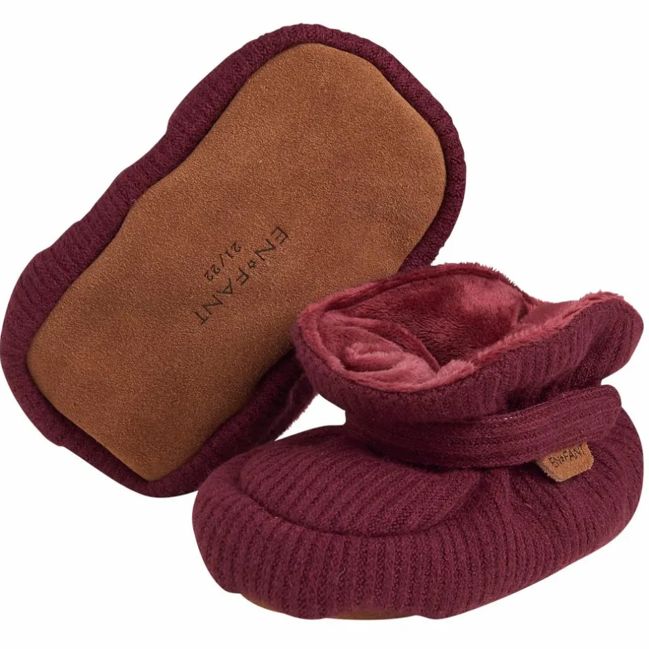 En Fant bløde baby hjemmesko. Super fine og bløde hjemmesko til baby med velcrolukning og elastikkant rundt om anklen. Bunden er lavet af ruskind, så baby bedre kan stå fast og tager på samme tid noget af kulden fra gulvet. Indersiden er med blød for, så de er super lækre og varme.