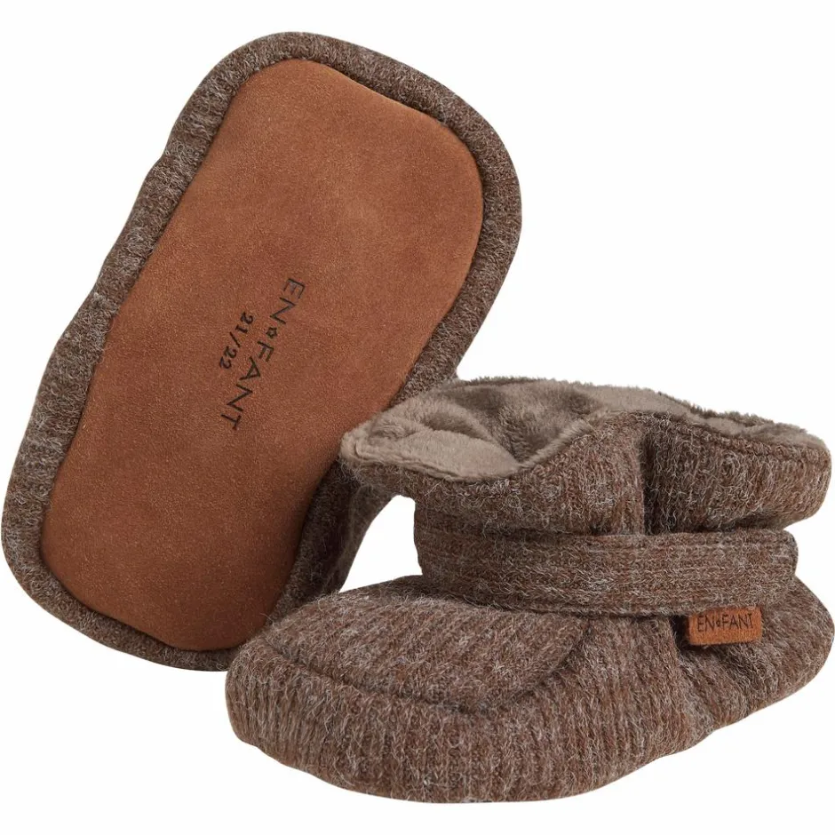 En Fant bløde baby hjemmesko. Super fine og bløde hjemmesko til baby med velcrolukning og elastikkant rundt om anklen. Bunden er lavet af ruskind, så baby bedre kan stå fast og tager på samme tid noget af kulden fra gulvet. Indersiden er med blød for, så de er super lækre og varme.