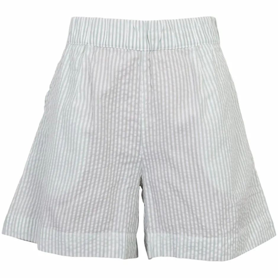Lækre dame shorts i et flot stribet print. Shortsene er behagelige at have på og er lette at style med en fin sommertop, en t-shirt eller en skjorte eller sweatshirt. Der er sidelommer i de korte bukser og i taljen er der en bred elastikkant.