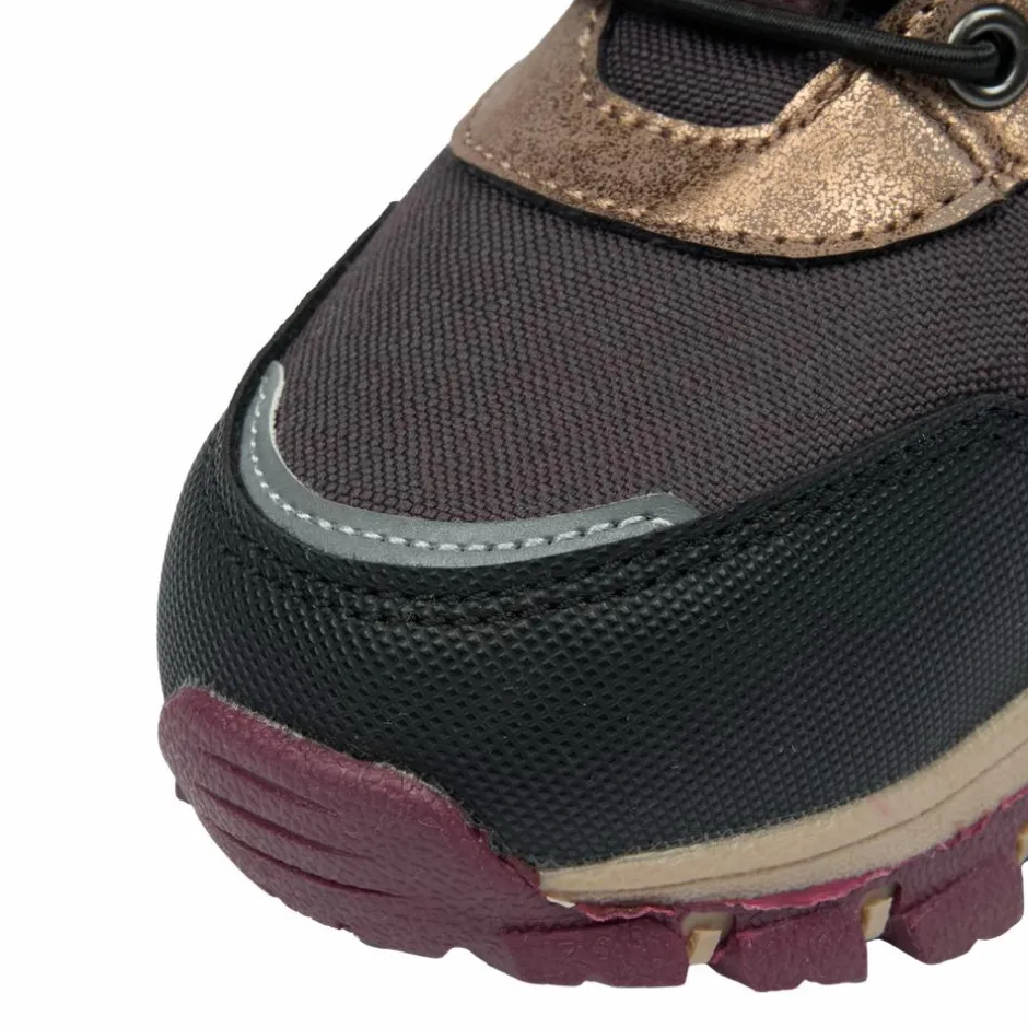 Mikk-line vinterstøvler til pige. En vandtæt støvle, der med en isolerende foring sørger for at holde fødderne varme og tørre i de kolde vintermåneder. Støvlerne har velcrolukning og justerbare snøre. De har en strop bagtil, så de er nemme for barnet at få af og på. Ydersålen er robust og har et groft mønster, der giver et godt fodfæste på glatte overflader.