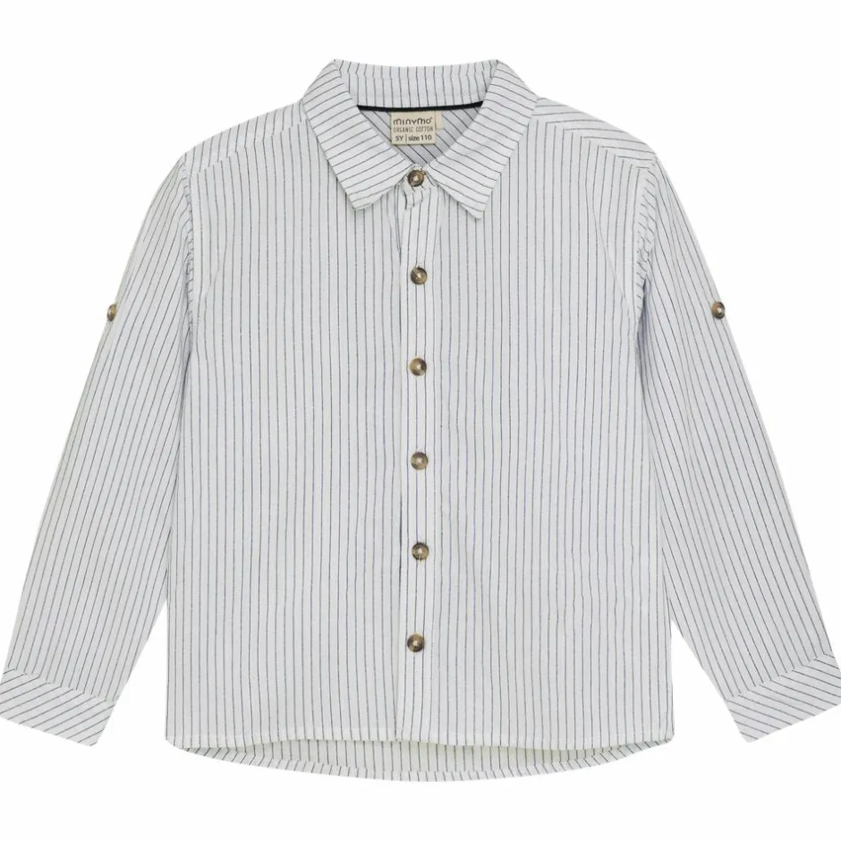 Minymo langærmet bomuldsskjorte i stribet design. Skjorten har klassisk pasform og design, og har gennemgående knaplukning på fronten.