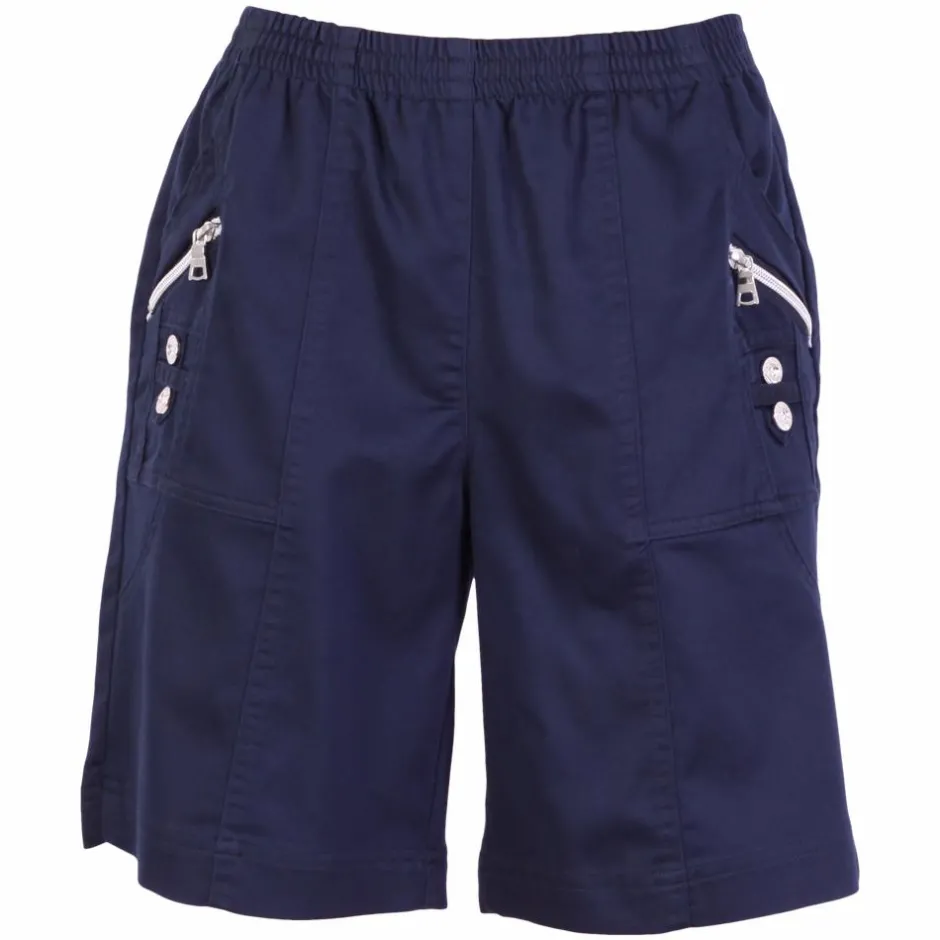 Smarte dame shorts med elastik i linningen og to lommer med flotte lynlås detaljer. De har ikke lommer bagpå.