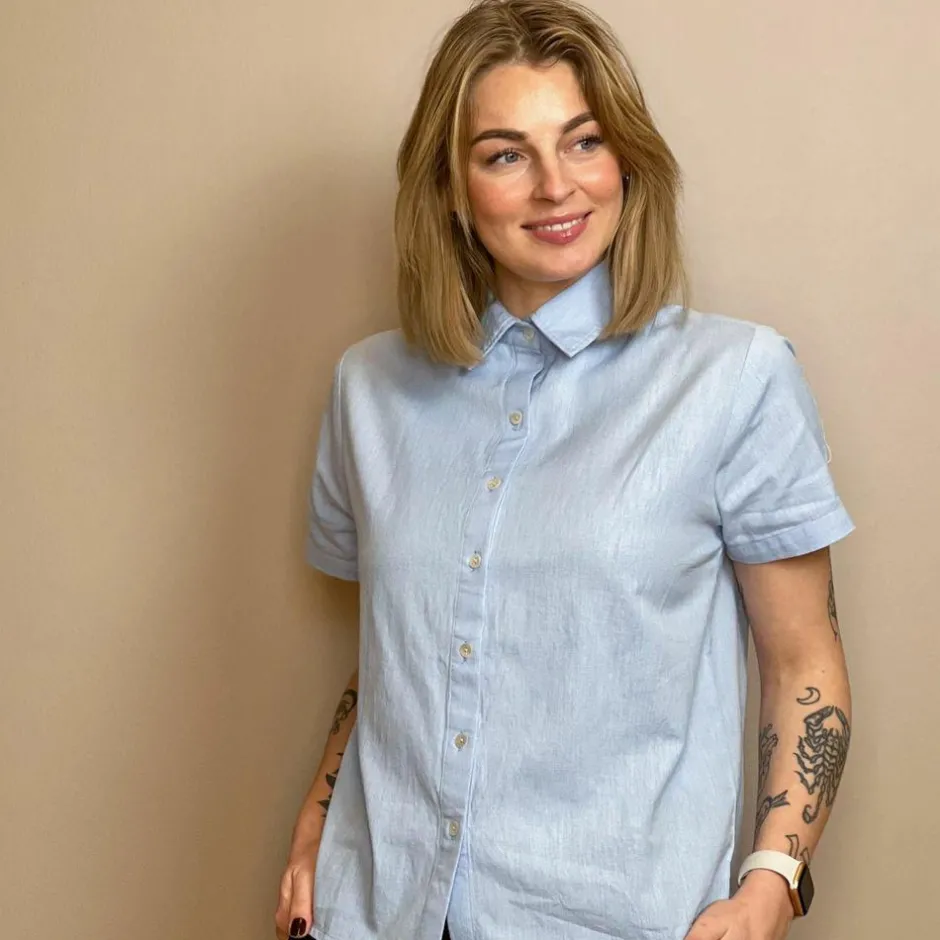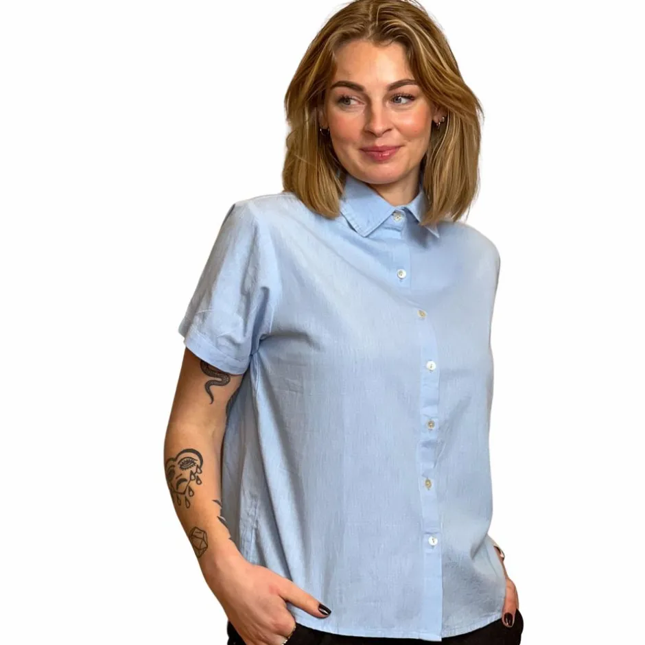 Online Steenholt Linett Dame Kortærmet skjorte i hørmix – Heavenly Blue