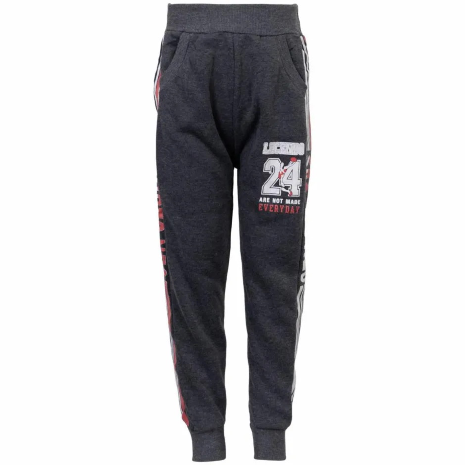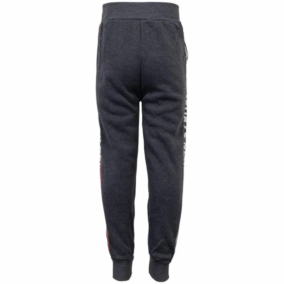 Børne joggingbukser med børstet, blød inderside. Bukserne har print langs siderne og på det ene bukseben. De smarte sweatbukser har to sidelommer og elastikrib i taljen samt ved buksebenets afslutning. Perfekte til hverdag og fritid.