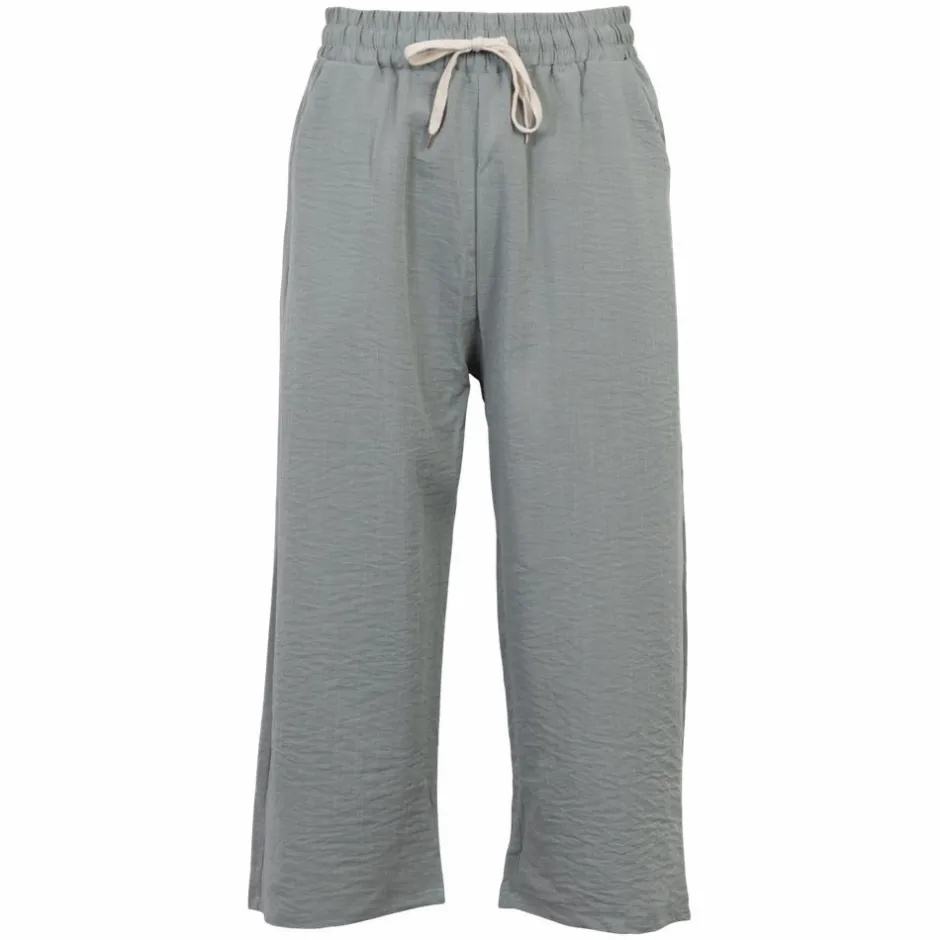 Anyway dame capri bukser. Bukserne er fremstillet i blødt materiale, som føltes behageligt at have på. Capri bukserne har elastik og snøre i taljen, som gør det er muligt at justere bukserne. Bukserne har to sidelommer.