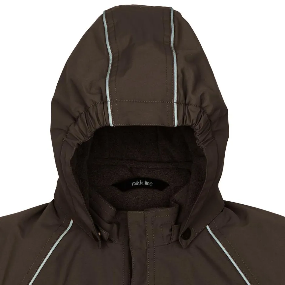 Ensfarvet mikk-line flyverdragt til børn, der elsker leg og eventyr i naturen og under åben himmel. Det er en holdbar nylon flyverdragt af høj kvalitet og enkelt design, der holder barnet varmt og komfortabelt i det kolde efterårs- og vintervejr med vind, regn og sne. Flyverdragten er lavet af nylon og polstret med polyesterfyld. Hætten og overkroppen har blødt fleece foer, hvorimod ærmerne, lommerne og benene har en glat og gnidningsfri indvendig overflade. Dragten har en aftagelig hætte med trykknapper og justerbare og slidstærke silikone fodstropper under støvlerne.