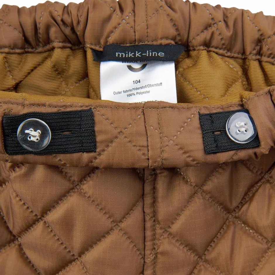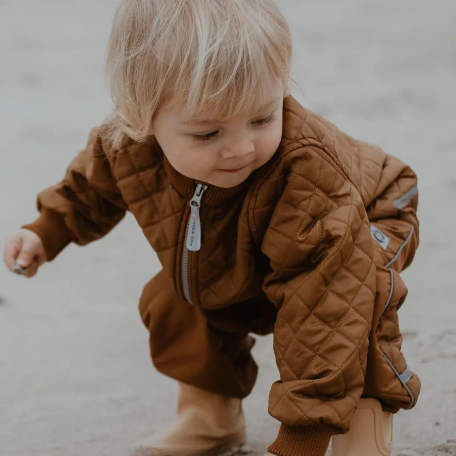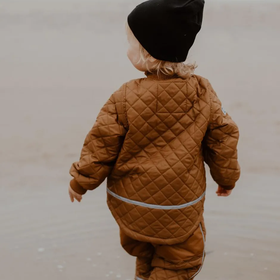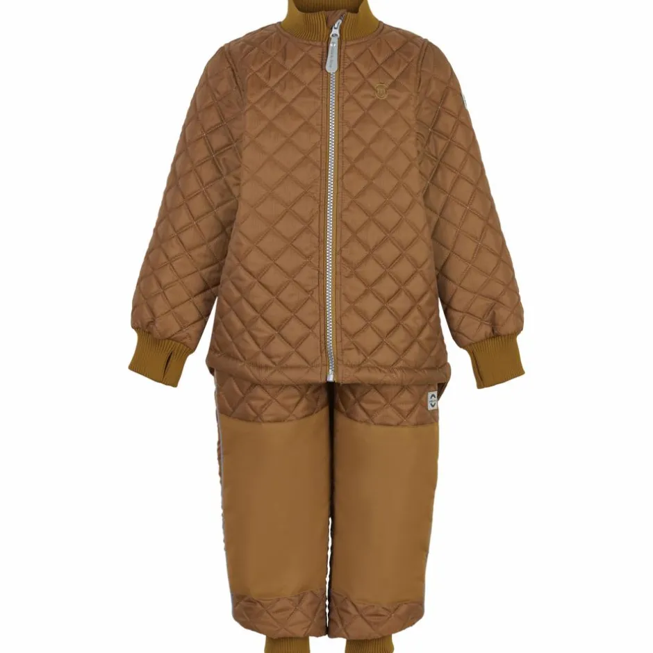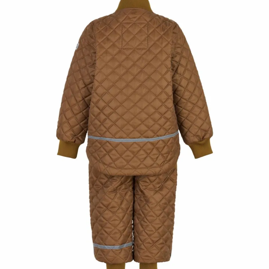 Mikk-line børne termotøj. Termosættet er vandafvisende og vindtætte, samt har sættet reflekslogo og refleksbånd, som gør at børn kan ses i mørke. Bukserne har forstærkninger på knæene og bag på bukserne, som gør bukserne ekstra slidstærke. Bukserne har elastik og justerbar talje, som gør at bukserne kan tilpasses om livet. Sættet har ribkant om halsen, ærmerne og i bunden af bukserne.
