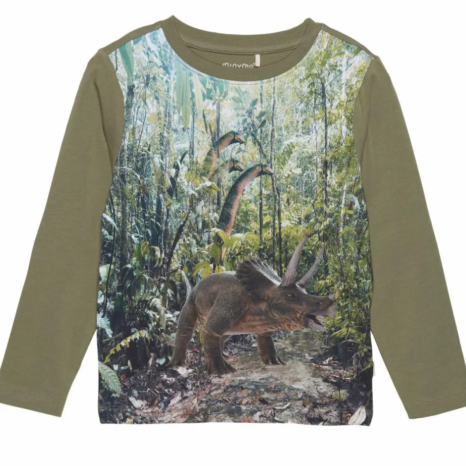 Outlet Minymo Dinosaur Drenge Langærmet t-shirt – Deep Lichen Green