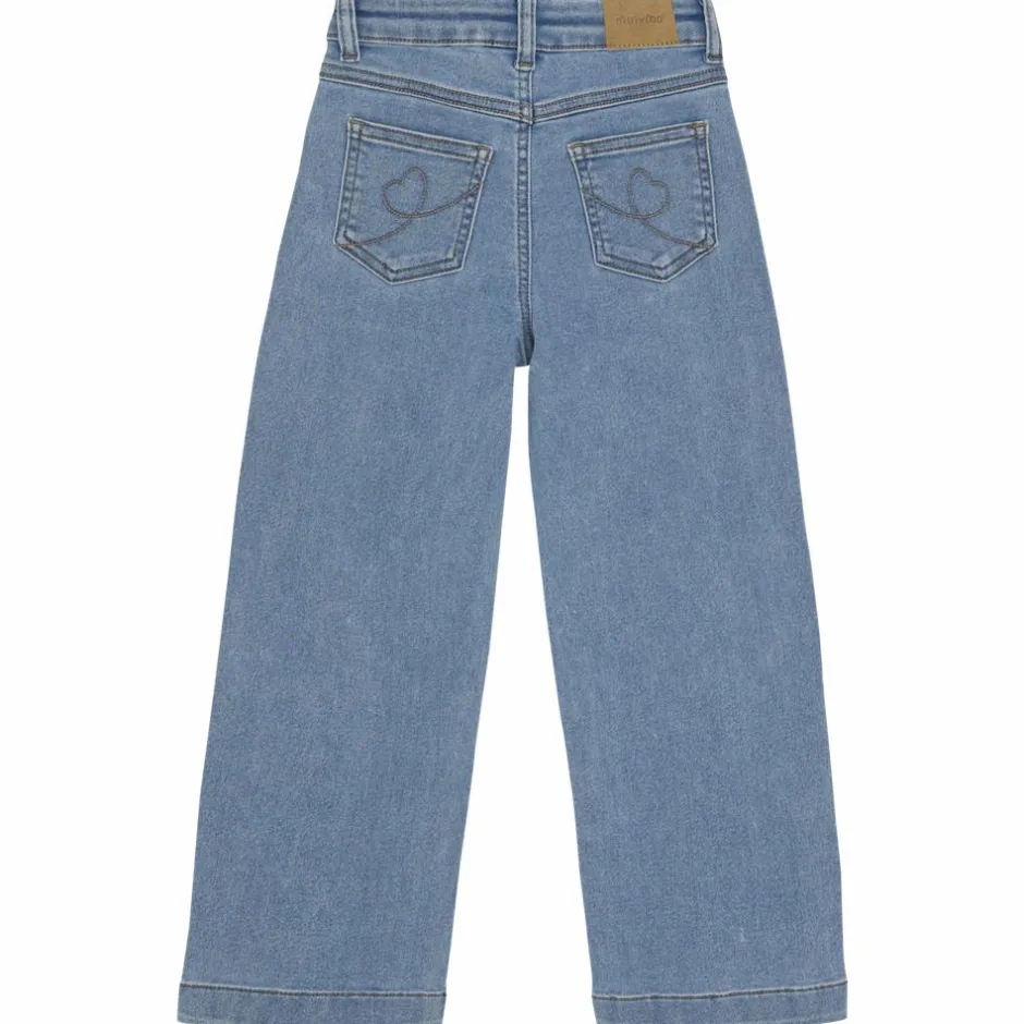 Minymo jeans med wide leg og en løs pasform. Bukserne har for- og baglommer samt bæltestropper.