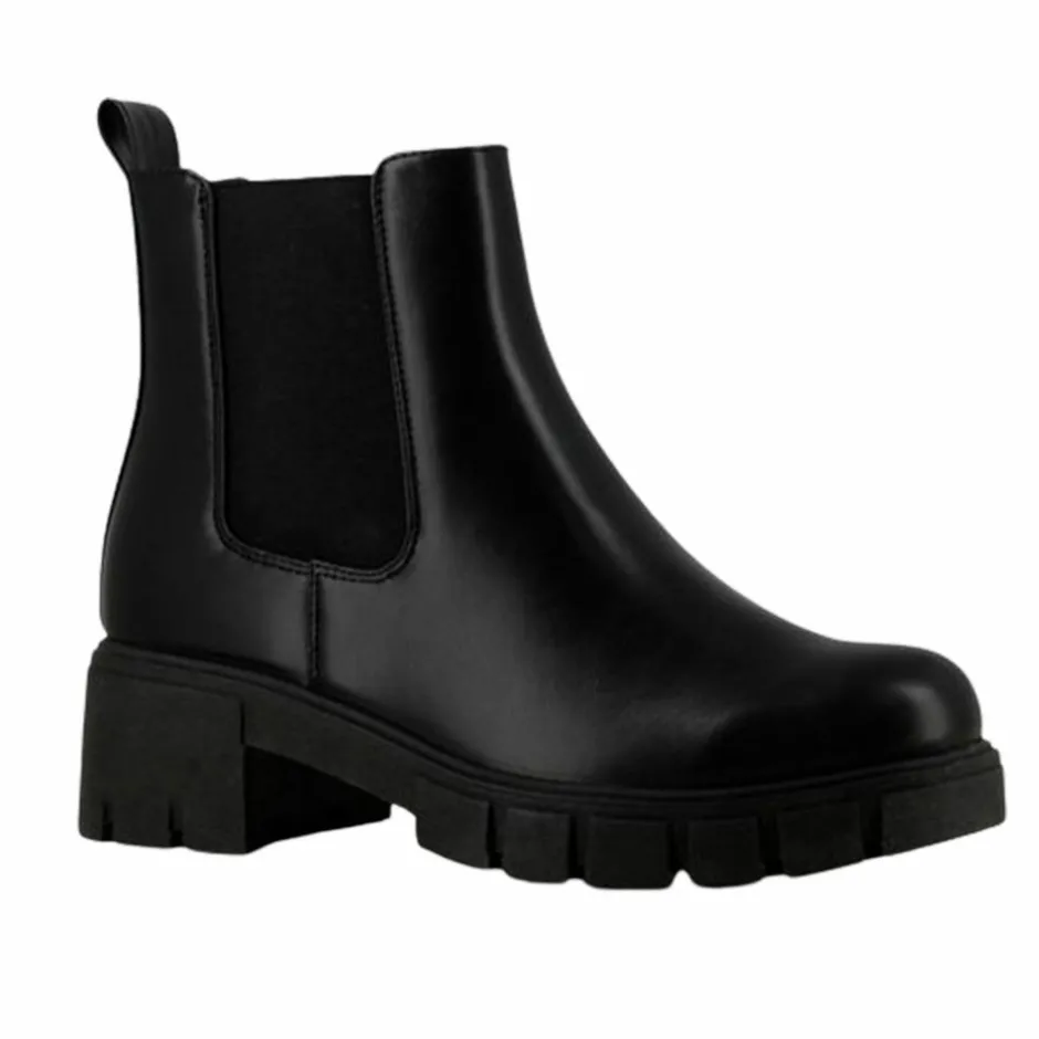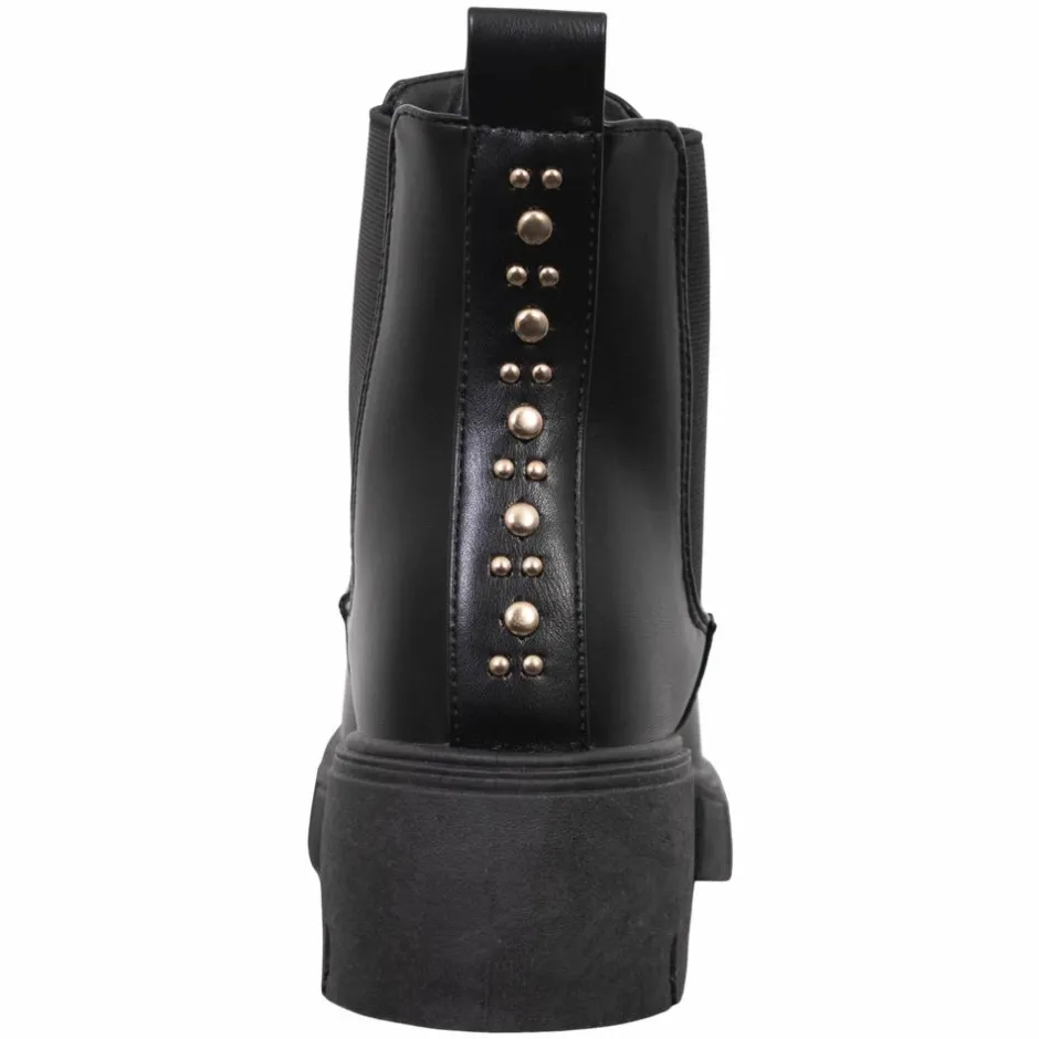 Les Arlésiennes dame chelsea støvler. Flotte støvler i PU læder med små nitter bagpå. Støvlen har en god solid bund, elastik på begge sider og en strop bagtil, så støvlen er nem at komme i.